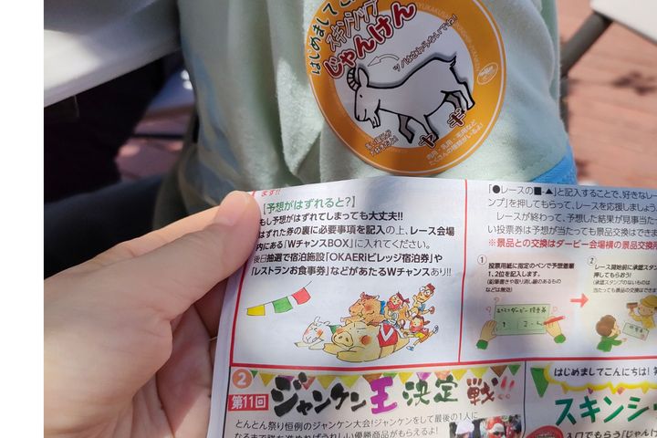 ➡入口でもらうじゃんけんシールで参加できる。行き交う人とじゃんけんして勝ってシールを集めて商品ゲット