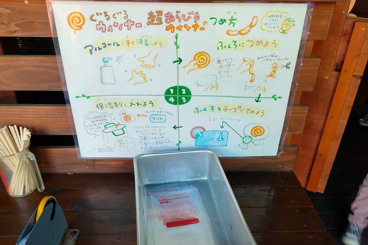 体験では、手洗いから始まり、クイズをしたり、材料や作り方の説明を受けた後に、いよいよウインナー作り開始です。