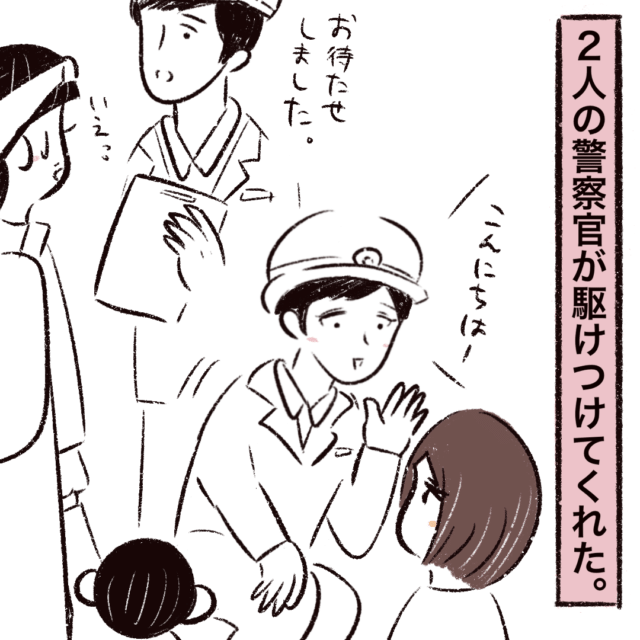 駆けつけてくれたのは男性と女性の2人の警察官。