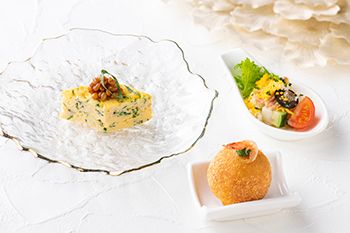 セイボリーは、枝豆やアスパラガスなど初夏の食材を贅沢に使用。デザートとの組みあわせも絶妙で、お腹がいっぱいになっても楽しめます。