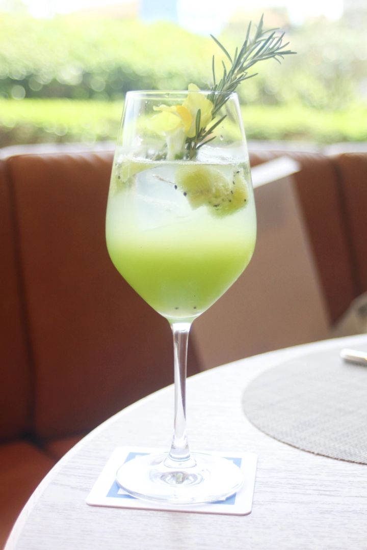 この時期は、キウイとノンアルコールジンとトニックウォーターをあわせた甘酸っぱく、スッキリとしたさわやかな仕上げ。
