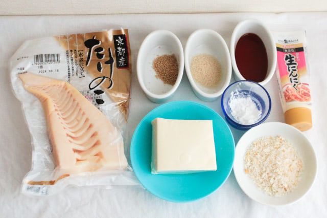今回作ってみる「たけのこクン」も、ローソンのホットスナック「からあげクン」からヒントを得たアイデア揚げ物。お肉は使っておらず、木綿豆腐とたけのこ、常備している調味料で作っていました!