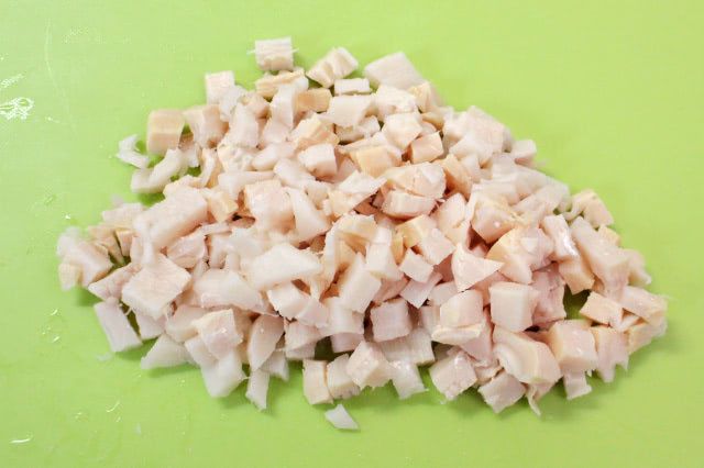 穂先側はたけのこの食感を楽しめるように細かく角切りにします。
