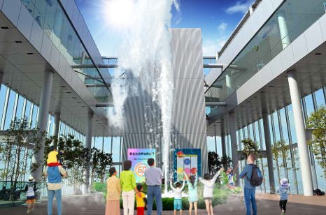 今年で開業10周年のアニバーサリーイヤーを迎える「ハルカス300(展望台)」。これを記念して、ハルカス58階の屋外吹き抜け空間「天空庭園」中央に噴水を配した体験型イベント「HARUKAS WONDER SPRING」が開催されています。