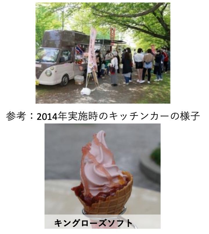 こちらの会場にも地域食材を使用した特別メニューが販売されますよ!キッチンカーの店舗が軒を連ね、各店舗で考案したオリジナルの特別メニューになっているのだとか。一例としては、大温室クリスタルパレス内カフェ「GREEN ROSE」で提供される「キングローズソフト」などがありますよ。