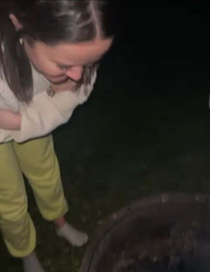 BBQコンロの中を虚しく見つめるこちらの女性。 一体どうしたというのでしょうか。