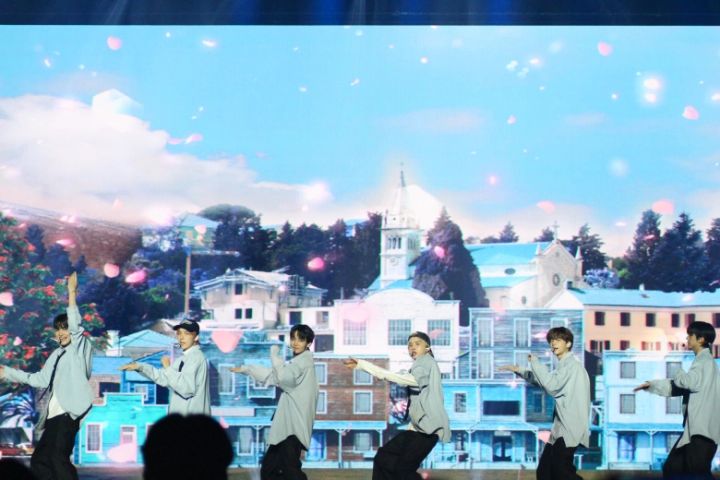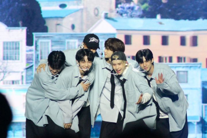 爽やかな制服風の衣装で登場したTWSは、1曲目に「Oh Mymy:7s」を披露しました。