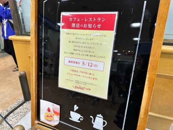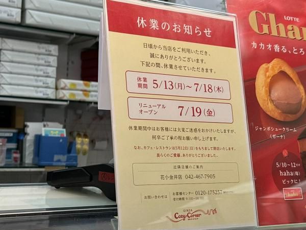 【田無】5/13から休業の「銀座コージーコーナー リヴィン田無店」カフェは閉店