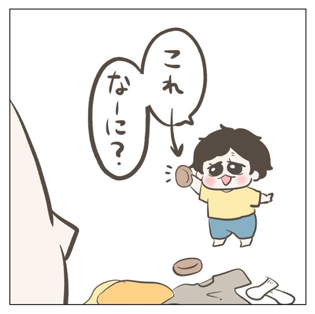 ジェーコさんが洗濯物をたたんでいると、3歳の息子さんが「これなーに?」と質問。