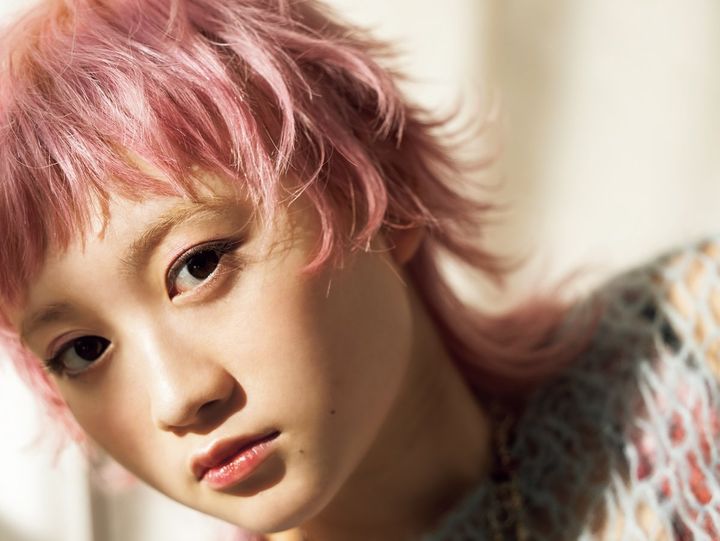 とにかく色が白く透明感のある肌には、涼しげかつ柔らかい印象を与えてくれるペールトーンがよく似合う! トップを大胆に切り込んだやや奇抜なウルフスタイルでちょっぴり中性的な印象に見せつつ、ペールピンクのハイトーンと小粋なカールで、ふんわりとした柔らかさや甘さを足し算しているのもしゃれてる。