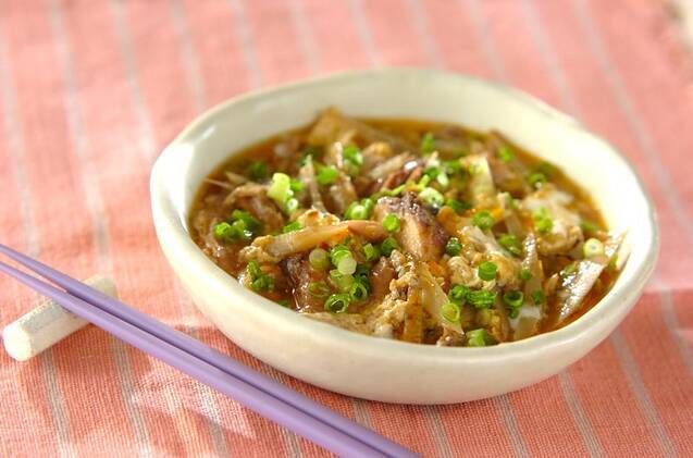 サバ缶とささがきにしたゴボウを和風味で煮て、卵でとじた柳川風の一品は、白いごはんのおかずだけでなく、日本酒のおつまみにも。優しい味わいがオススメです。