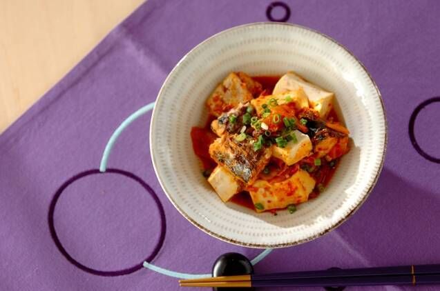 下ごしらえがいらないサバ缶は、時短でごはんに合うおかずが作れます。発酵食品のキムチをゴマ油で炒めて、サバ缶と合わせて煮込んだ一品はキムチの甘みとうまみが溢れて美味。