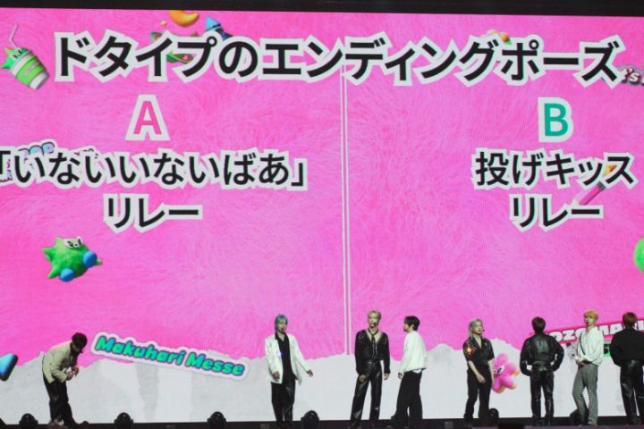 次に披露する曲のエンディングポーズもファンと一緒に決めます。