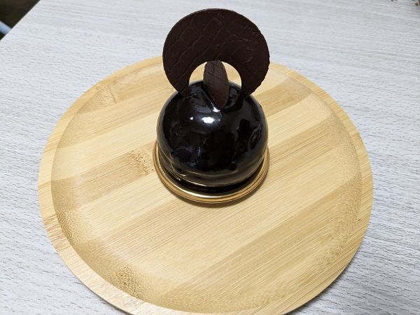 ブル・ア・ショコラ(テイクアウト540円)。丸いフォルムが可愛い濃厚チョコレートムースのケーキです。濃厚ですが後を引かない甘さで、大人向けのケーキ。甘いケーキが少し苦手な方も是非試してみてください。