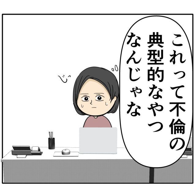 自分の勘違いだと思いつつも、良し男さんとふり子さんの関係に疑いが拭えずにいたマキさん。社内で2人の様子を見ていたマキさんは、良し男さんが席を外すとふり子さんも席を外していることに気付き・・・「これって・・・不倫現場おさえるチャンスか!?」と感じます。