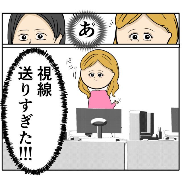 ふり子さんと目が合ってしまい慌てるマキさん。