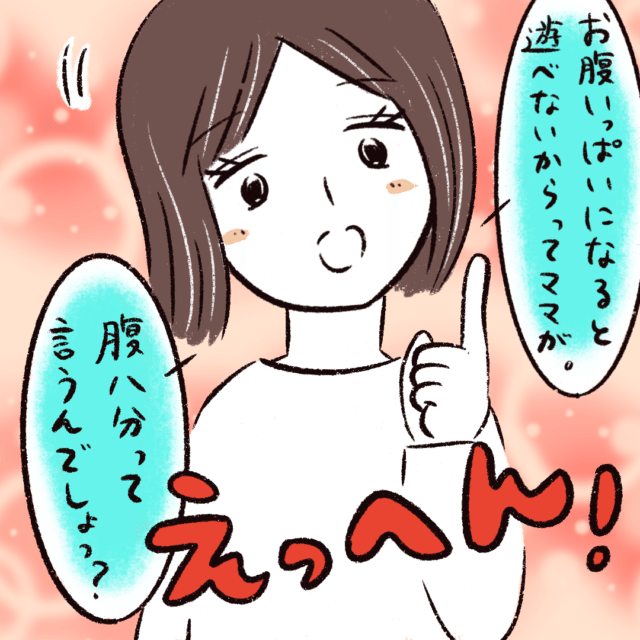 「お腹いっぱいになると遊べないからってママが。腹八分って言うんでしょっ?」