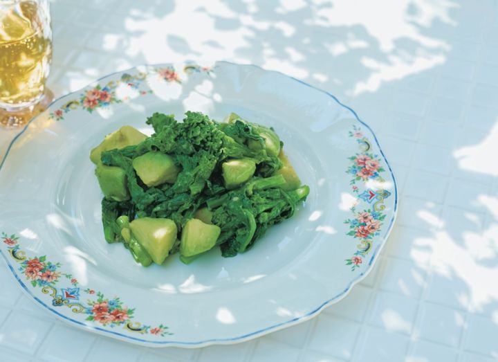 リピート間違いなし! ほろ苦い菜の花×濃厚なアボカドに、アンチョビで作った旨みの強いドレッシングが絶妙に合う。