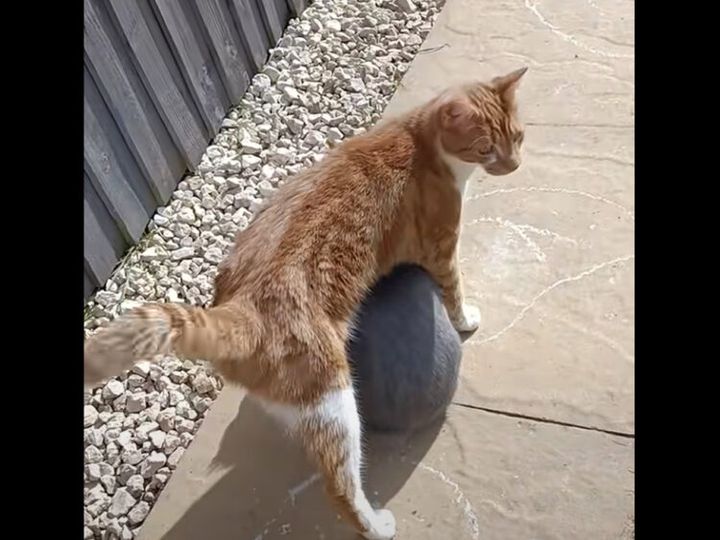3. 「歩きにくいニャ」猫の足元になにかいる!