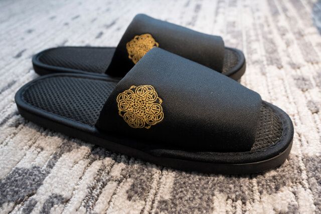 ▲グランドメルキュールジャパンのモチーフロゴが描かれたスリッパ