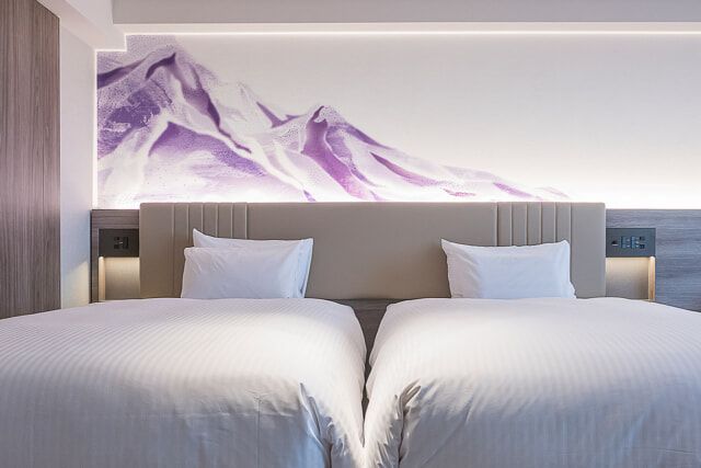 客室は、富士山側の「マウンテンビュー」と「八ヶ岳&森ビュー」の2タイプ。特にスーペリアツインには、地域の自然や伝統工芸をモチーフに、間接照明を採り入れるなど、モダンなデザインが施されています。