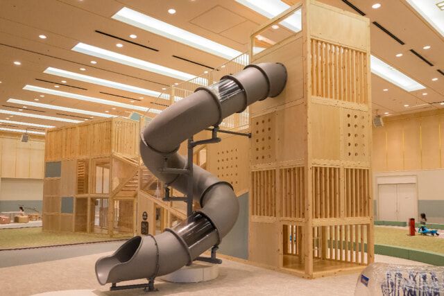 雨天でも子供が思う存分楽しめるように、建物内にアスレチック施設を用意。八ヶ岳の名にちなんだ「杜の8(もりのえいと)」は、木材をふんだんに使って八ヶ岳の自然をモチーフにしたアクティビティ施設です。全長約5mの遊具や高さ3mのボルダリングなど、様々な遊具がそろいます。利用時間は9時から12時までと、14時から20時まで。