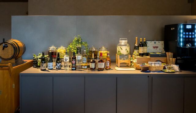 ▲お酒を豊富にそろえたラウンジのサービスカウンター