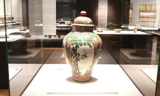 手前、重要文化財 色絵花鳥文八角大壺 江戸時代 17~18世紀 サントリー美術館蔵 通期展示、他「サントリー美術館コレクション展 名品ときたま迷品」展示風景 サントリー美術館