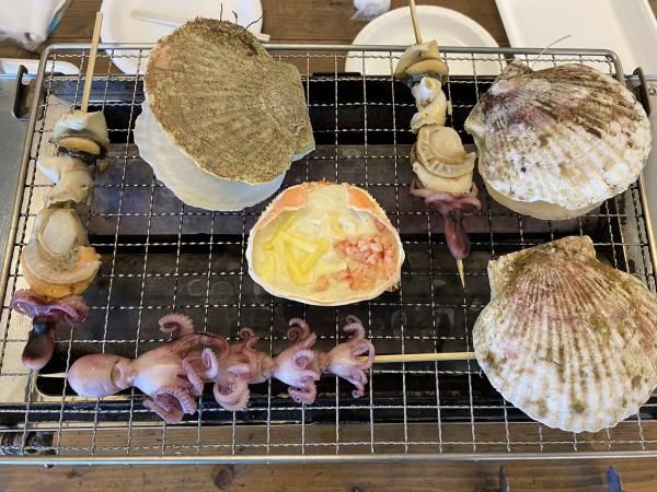 いい香りがすると思ったら・・・買った海鮮をその場で焼いて食べる事も出来ます。大きなほたて。プリップリなタコ。最高です~~。牡蠣を焼いている方もいて、とっても美味しそうでした。
