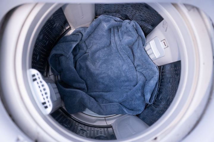 縦型洗濯機は、回転羽根に近い底のほうが洗浄力が高いので、ニオイが気になるタオルは洗濯機のいちばん下に入れて洗濯しましょう。汚れやすい中央部分を底に広げるようにして入れると、菌のエサとなる汚れがしっかり落ちます。