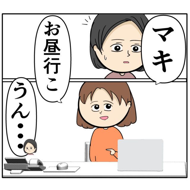 「マキ、お昼行こ」