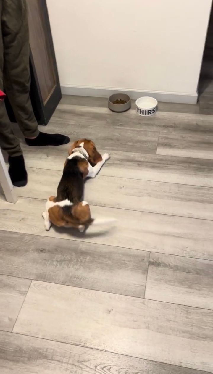ご紹介する動画は、アメリカ・カリフォルニア州のとあるお宅で撮影されたもの。 ビーグルの子犬がとった素直な行動を見ていきましょう。