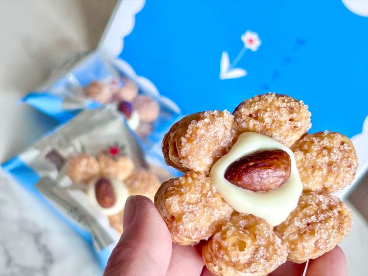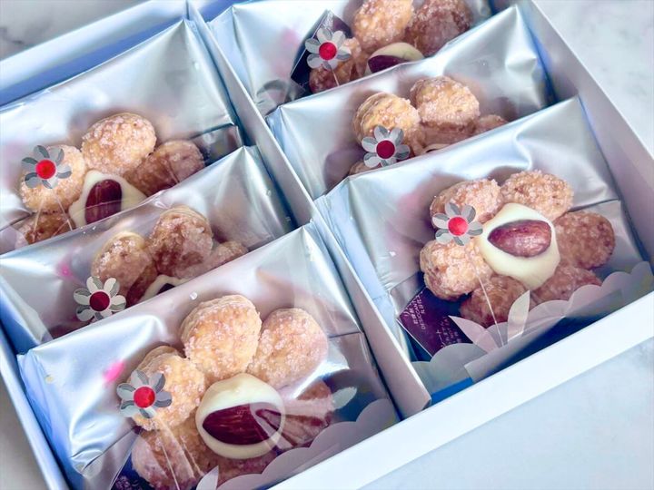 さらに、小さなブーケのような形のお菓子「ティックル」(12個入・税込997円、27個入・税込2,160円)。こちらはマカダミアバニラとチョコアーモンドの2種類の詰め合わせになっています。