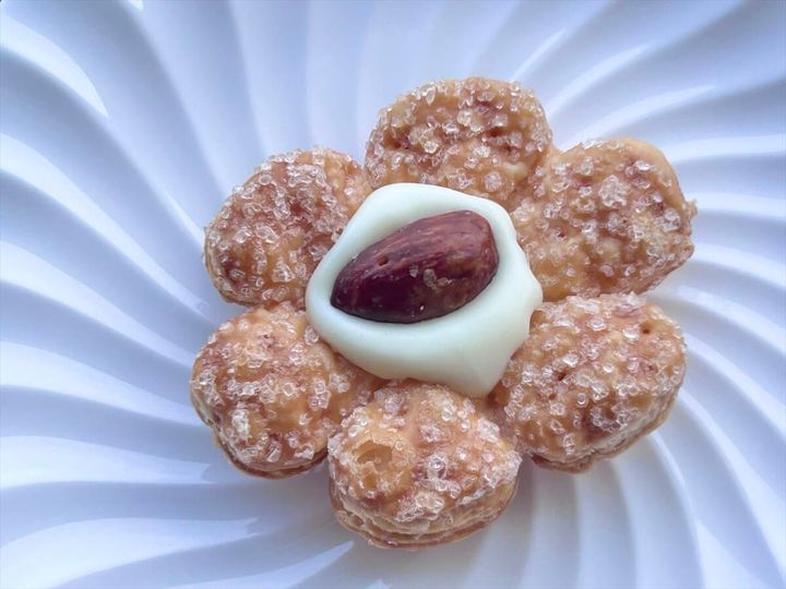 お皿に出してみました。測ってみると、直径7cmほどの大き目サイズ。可愛らしいお花の形に気分も華やぎます。