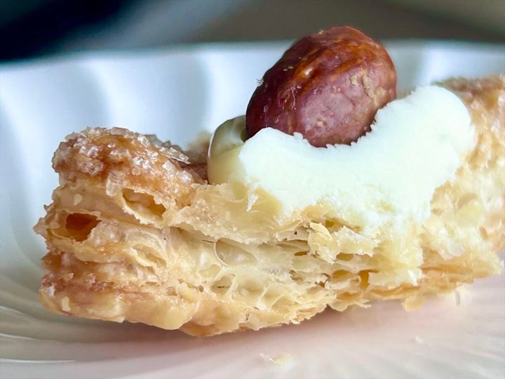 いただいてみると、空気を含んだようなふんわり感に驚かされました。それでいて、パイ特有の香ばしいサクサクとした食感もしっかりと楽しむことができます。