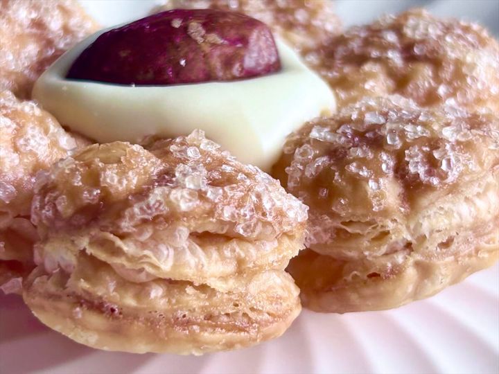 パイの作り方として、小麦粉などで作られた生地を伸ばしながらバターを折り込んで作る方法がよく知られていますが、「サブリナ」は、バターで生地を包んで折り込む方法で作られています。