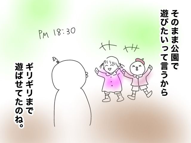 今日、パパ夜ご飯いらない勤務の日だし、夜予定が詰まらないからギリギリまで遊ばせてあげてたのね
