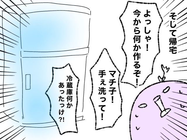 保育園お迎えの帰りに公園でマチ子ちゃんを遊ばせて帰宅し、急いで夕飯の支度をしなくてはならないアツアゲさん。冷蔵庫を開けると・・・