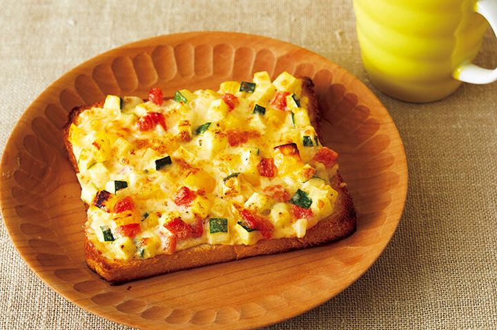 マヨネーズでからめた野菜をたくさんのせて焼くだけのシンプルなトーストです。まろやかな風味と野菜の甘味が食欲をかき立てます。マヨネーズが大活躍する手間いらずのレシピを、料理研究家の大庭英子さんに教えて貰いました。