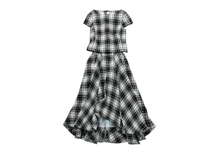 大柄チェックとアシメな裾がドラマティック!
