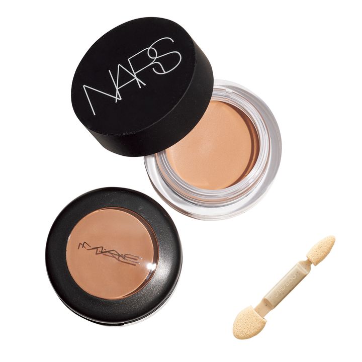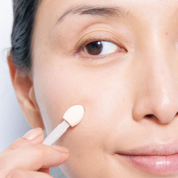 自分の肌と合う色を選んで取ったら、凹凸の上からチップの面を使って優しくプッシュ。油分が強すぎず、密着力の高いポットタイプのコンシーラーを使って。