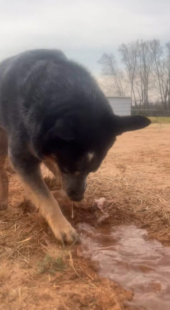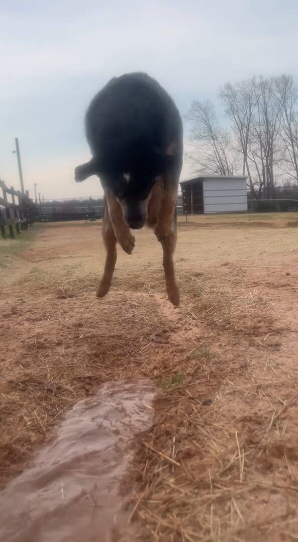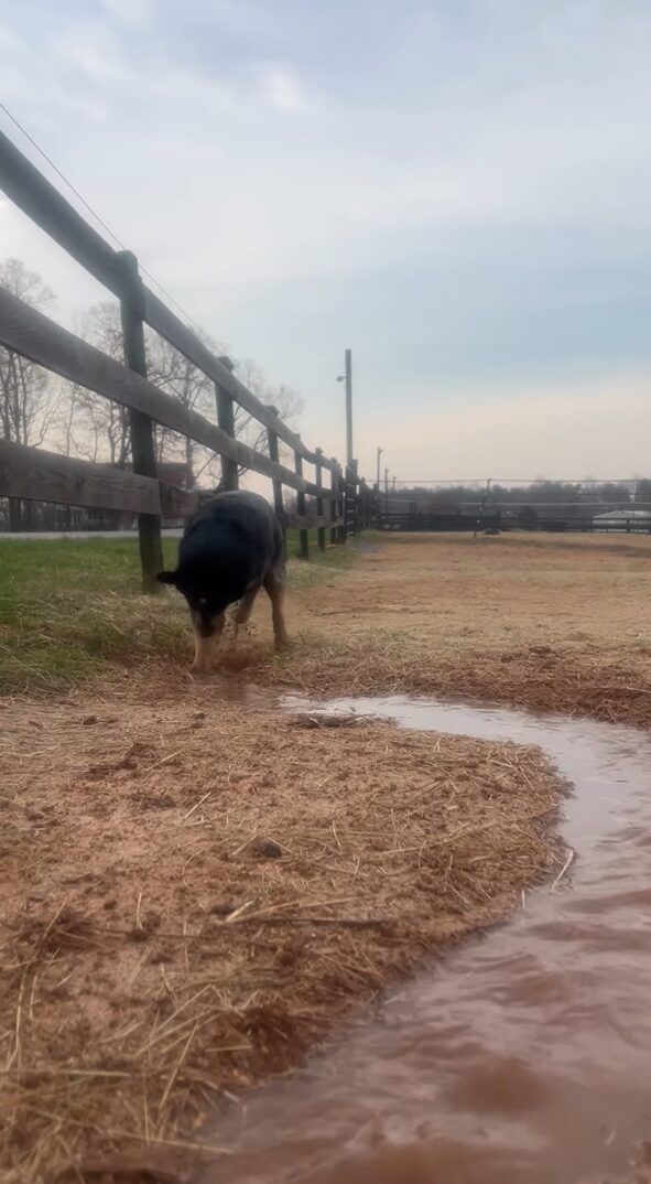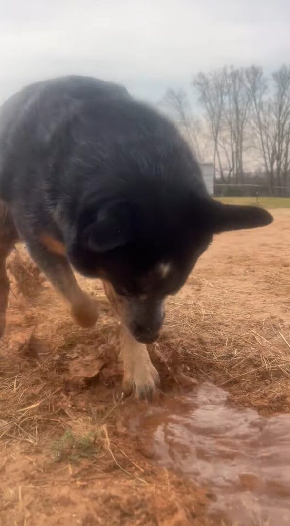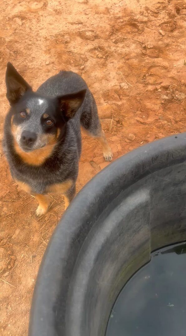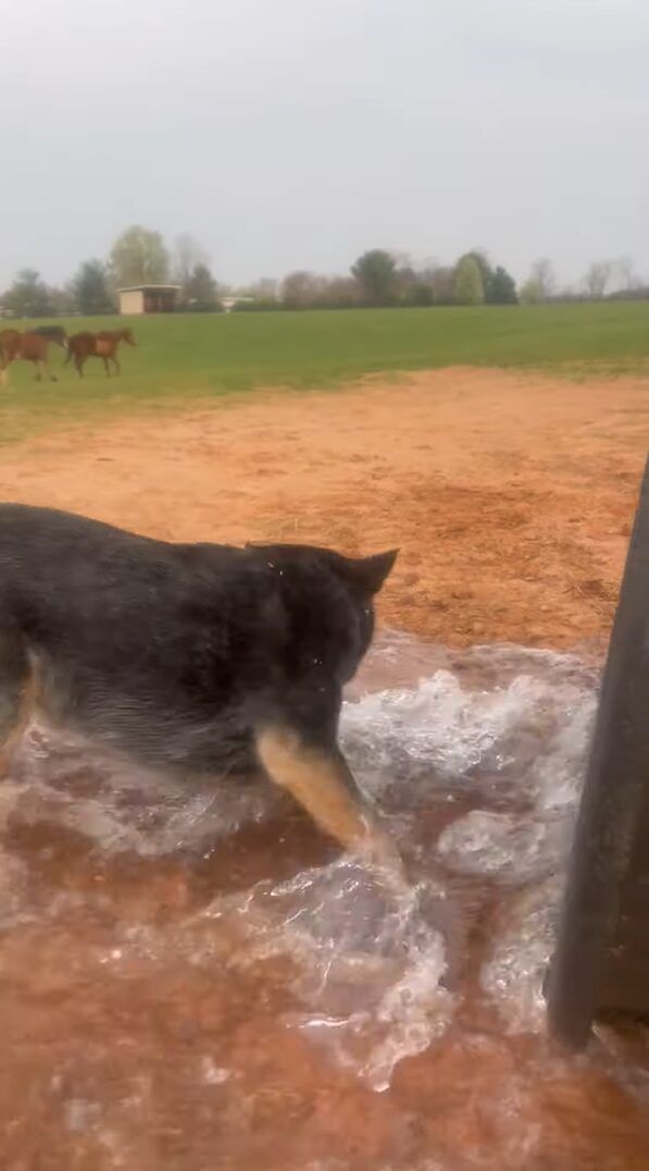 牧場で水を撒いてもらうと、さっそく水路を掘り始めたブルーヒーラーのシシー。 その作業は順調なようです。