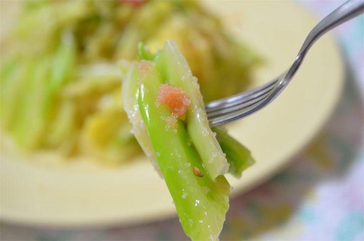 3. 【農家直伝】明太子とこめ油をキメる「変わり種コールスロー」にトライ♪なんと茹でる!?ヤミツキおつまみだわ♡