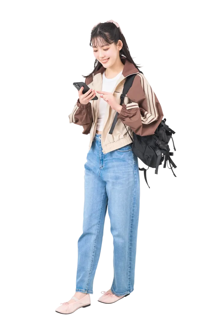 ジャケットは着回し。クロップド丈タンクトップ 1,090円/ZARA(ザラ) デニムパンツ 6,589円/ROPÉ PICNIC(ジュン) リボンヘアピン(2個セット) 1,760円/GOLDY リュック 13,200円/キャセリーニ バレエシューズ 7,909円/VIS(ジュン)
