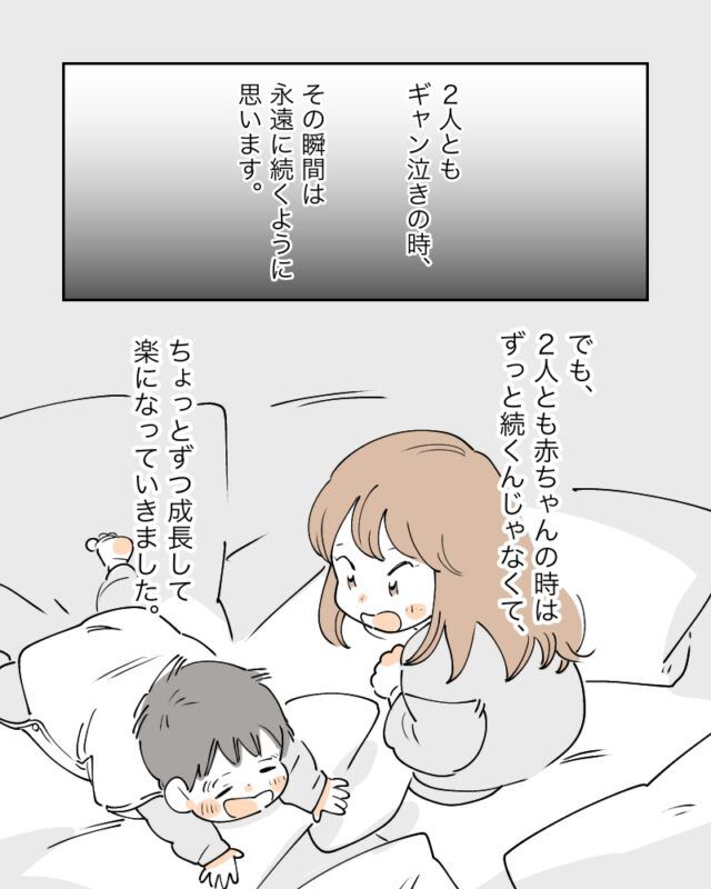 でも、2人とも赤ちゃんの時はずっと続くんじゃなくて、ちょっとずつ成長して楽になっていきました。