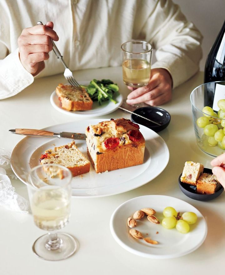 3. ワインに合うおつまみ『オリーブ、ナッツ、ミニトマトのケークサレ』のレシピ【オイルベースで簡単】