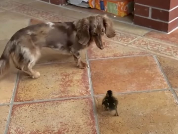 3. 犬「何この小っちゃいの〜!」 アヒルの子にタジタジ!