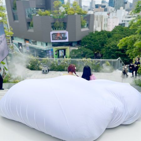 なんと、「ハラカド」の屋上に雲の上から大都会を見下ろすような「雲海」が出現!! 「綾鷹」を飲みながら、心を新たに前向きな気持ちになれるようなスポットになっていましたよ♪