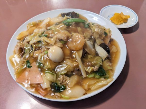 白菜にたけのこ、にら、大きなきくらげ、厚めのハム、うずらの卵などなど、野菜高騰の中、なんてボリュームなのでしょう。