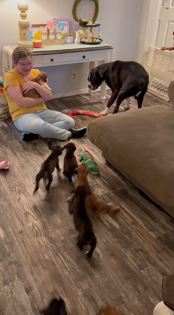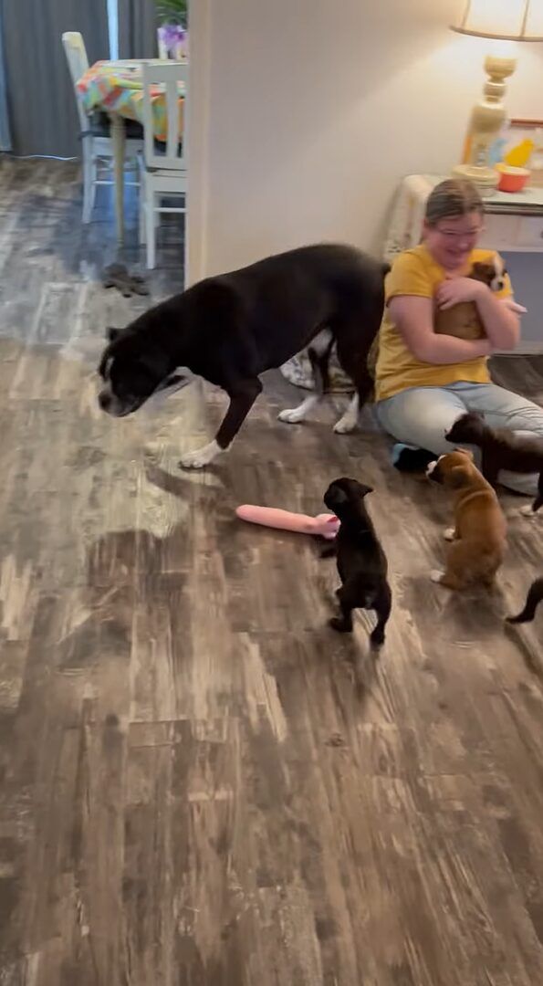 動画が撮影されたのは、アメリカ・オクラホマ州のとあるお宅。 子供たちが生まれ、愛犬のボクサー犬『クイン』は最近パパになりました。